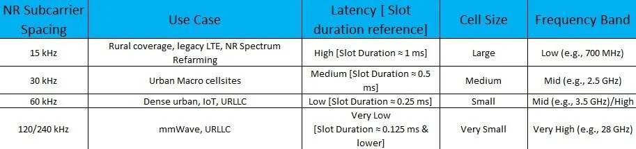 • Spectrum reuse and interference management hinge on matching SCS to cell size and frequency.